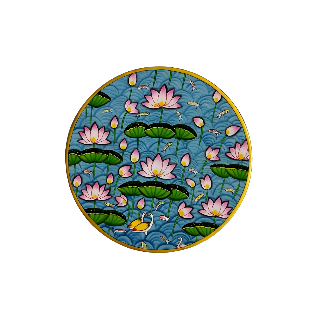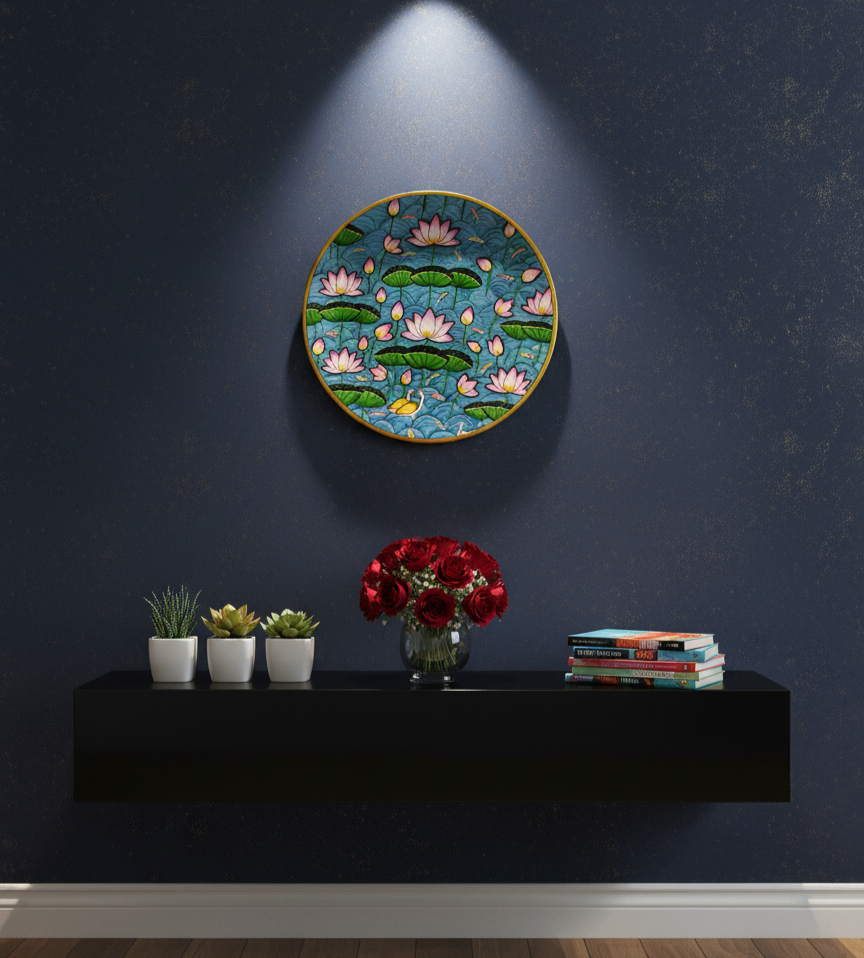 Pichwai art from Nathdwara, Rajasthan, beautifully portrays Lord Krishna, festive scenes, and nature in detailed, hand-painted designs that add cultural charm to any space.