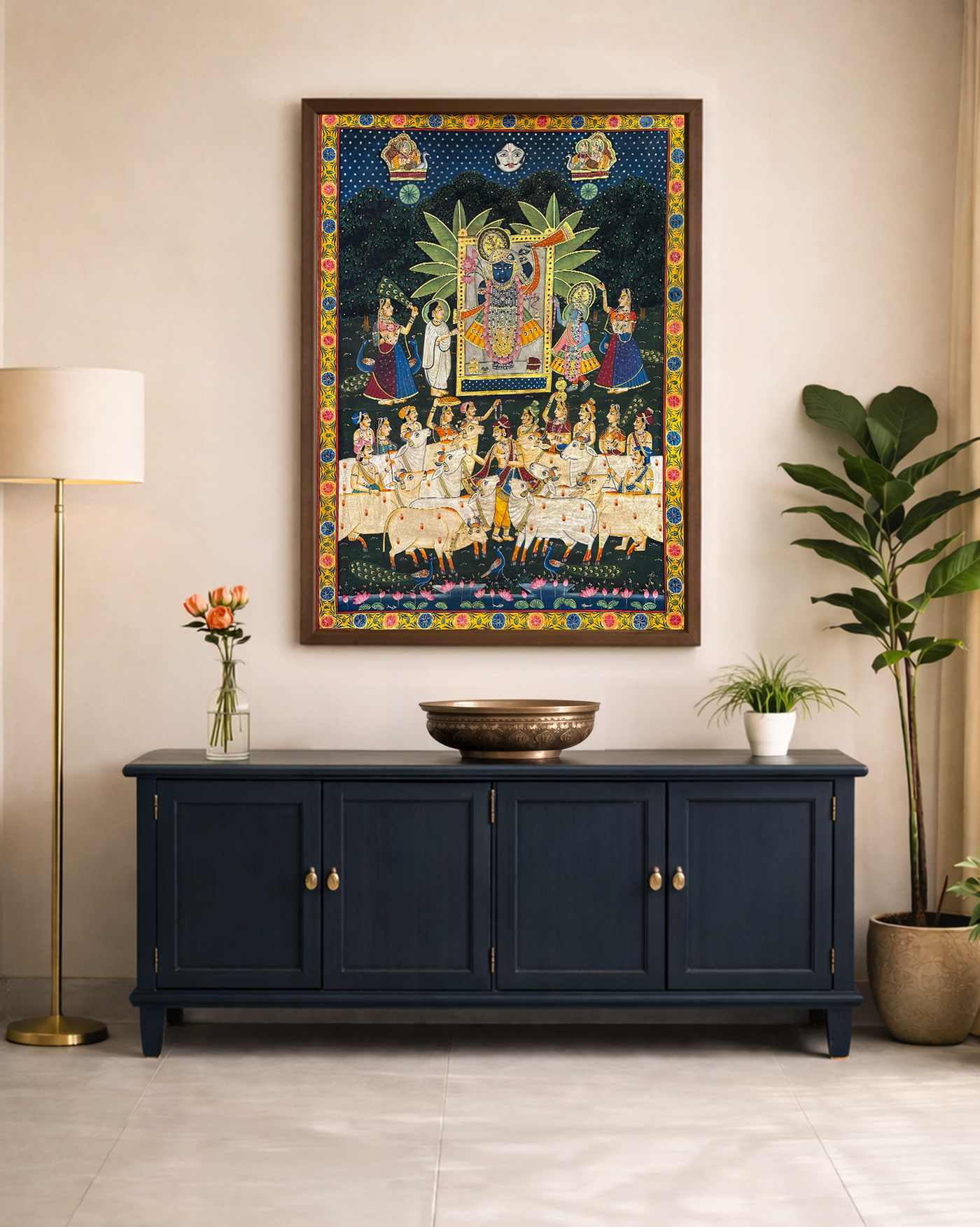 All Tanjore paintings come framed. Other artworks, such as Pichwai, Pattachitra, and Oleographs, are shipped unframed by default. Framing can be arranged at an additional charge upon request.